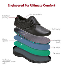Enjoy exceptional comfort and fit with Orthofeet's Arcadia - Black women’s casual shoes that offer a non-binding fit, extra room for toe movement, and maximum protection against pressure points. The Arcadia is designed with a hook and loop strap for maximum adjustability, allowing the tongue to completely open up for easy foot insertion. Their anatomical orthotic insoles and ergonomic soles provide comfortable support and excellent cushioning, making Arcadia - Black superior women’s orthopedic shoes for a variety of conditions, including plantar fasciitis, diabetes, neuropathy and arthritis.