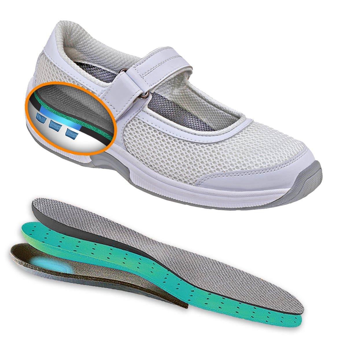 Enjoy exceptional comfort and fit with Orthofeet's Bristol - White women’s casual shoes that offer a non-binding fit, extra room for toe movement, and maximum protection against pressure points. Their anatomical orthotic insoles and ergonomic soles provide comfortable support and excellent cushioning, making Bristol - White superior women’s orthopedic shoes for a variety of conditions, including plantar fasciitis, diabetes, neuropathy and arthritis.