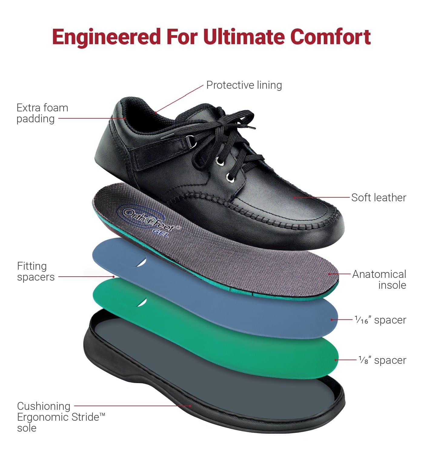 Enjoy exceptional comfort and fit with Orthofeet's Jackson Square, Tie-Less Lace men’s casual shoes that offer a non-binding fit, extra room for toe movement, and maximum protection against pressure points. Their anatomical orthotic insoles and ergonomic soles provide comfortable support and excellent cushioning, making Jackson Square, Tie-Less Lace superior men’s orthopedic shoes for a variety of conditions, including plantar fasciitis, diabetes, neuropathy and arthritis.