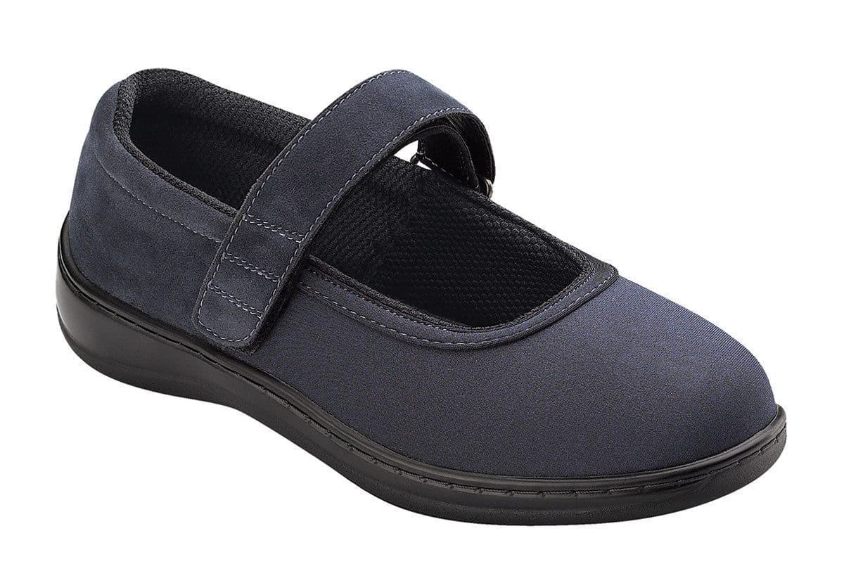 Our stretchiest shoe that provides the ultimate comfort for foot conditions such as swollen feet, diabetes, arthritis , bunions and hammertoes. Springfield - Navy Mary Jane shoes are designed with a stretch upper to provide a non-binding fit and pressure free environment. The extra long hook and loop strap allows you to adjust the fit around the instep for a comfortable fit. They are designed with extra depth and a wide toe-box, allowing ample room for unrestricted toe movement. The anatomical orthotic insole and ergonomic sole offer premium arch support and excellent cushioning, making every step you take soothing with comfort.