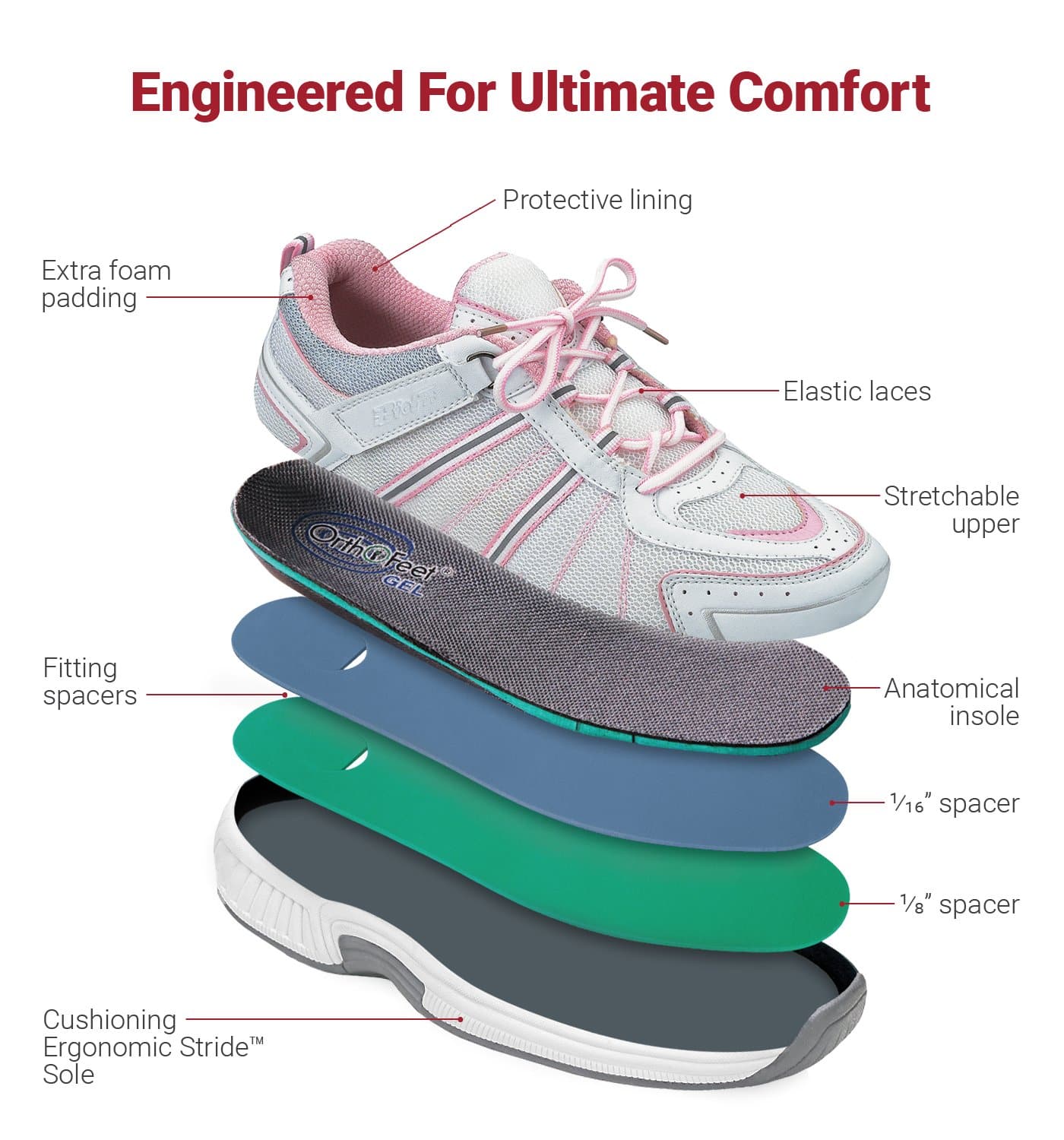 What's more, these shoes come with premium orthotic insoles, ergonomic soles, non-binding uppers, wide toe-box, and soft, protective interior, making Tahoe-Pink extraordinary women’s sneakers for plantar fasciitis, heel pain, foot pain, and an excellent solution for arthritis sneakers, diabetic sneakers and diabetic walking shoes.