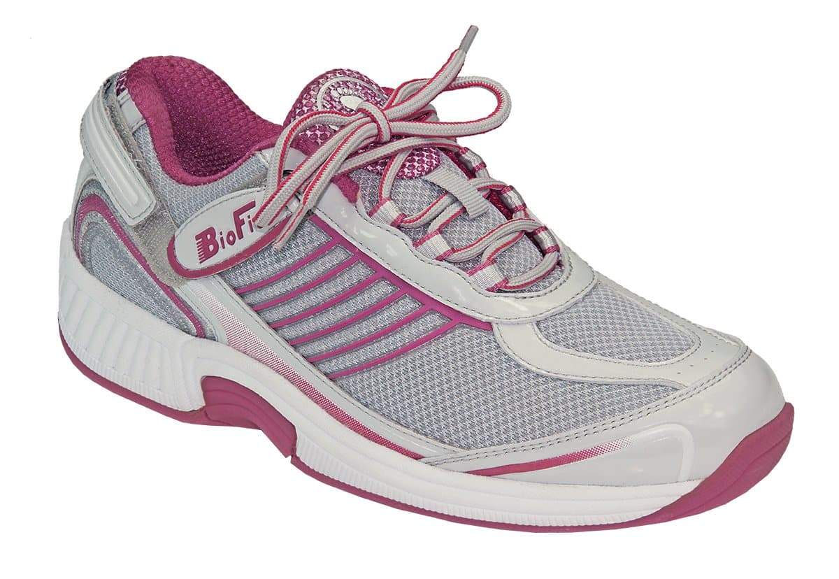 Enjoy exceptional comfort and fit with Orthofeet's Verve - Fuchsia women’s athletic shoes that feature a unique Tie-Less Lacing System that eliminates the need for tying laces.